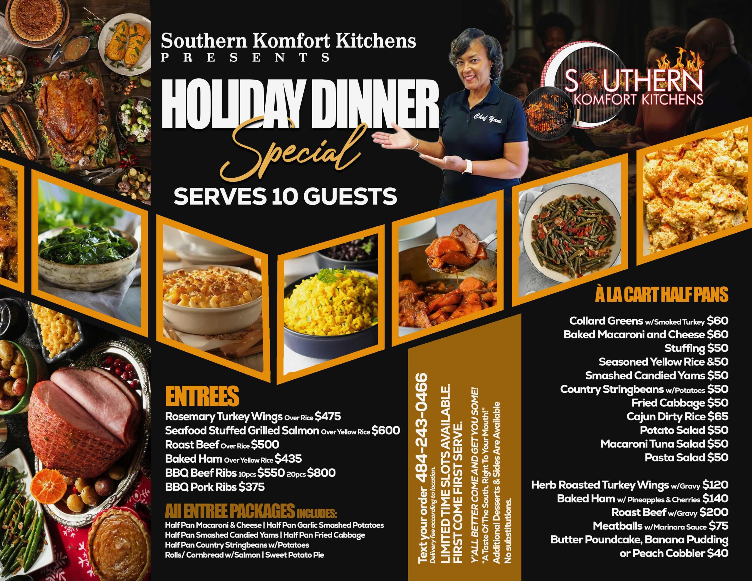 “Y’all!!!!! This BBQ is soooooo good good. You thought you been eating BBQ all ya life but you ain’t had no BBQ until you had Southern Komfort Kitchens they got the best BBQ I hav ever eaten in my life. And they cater cook outs toooooooo! Y’all better go head on and order a platter or get your next cook out catered. Take a load off and just host cause baaaabbbyyyyy. All the food is good and fresh and seasoned and mmmmmmmm.”